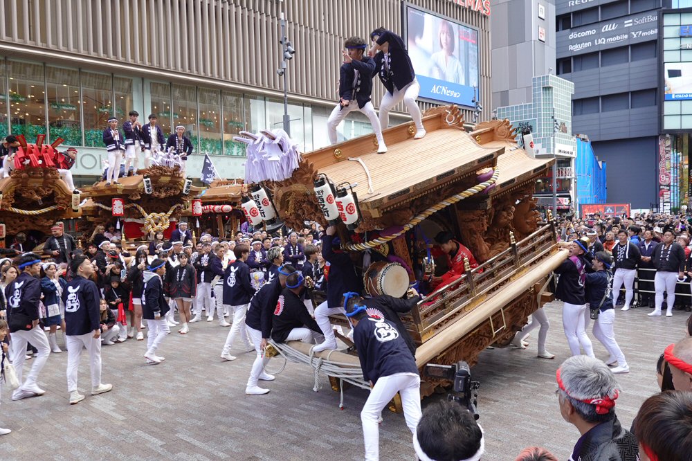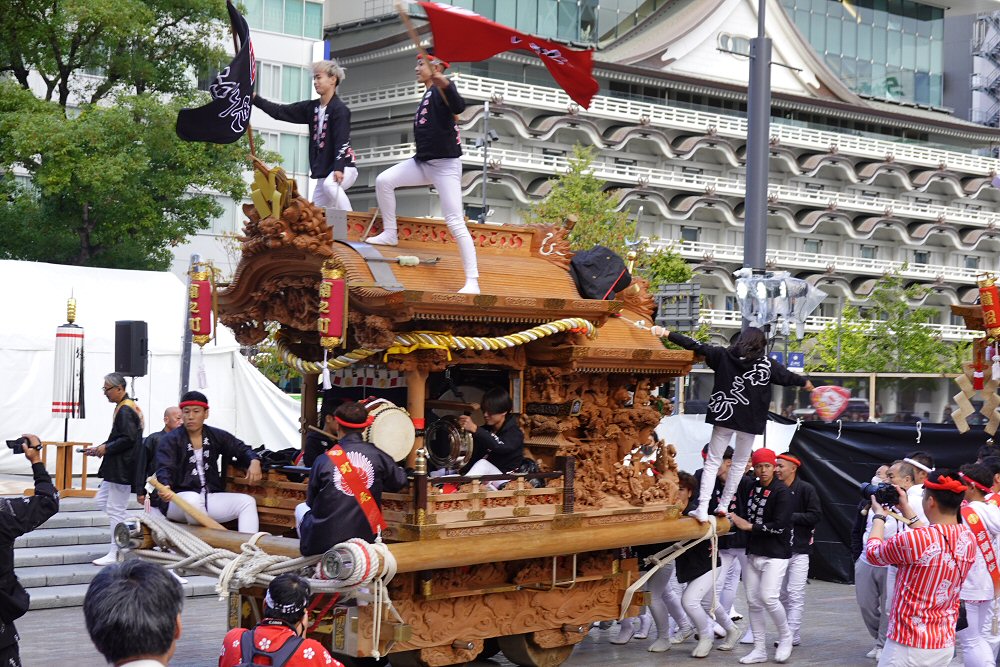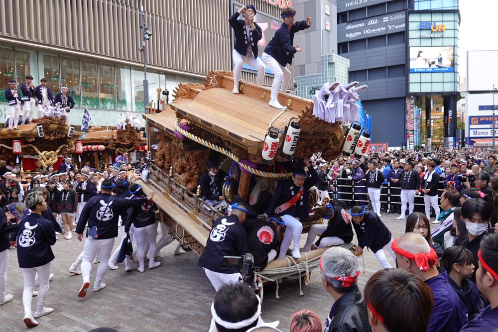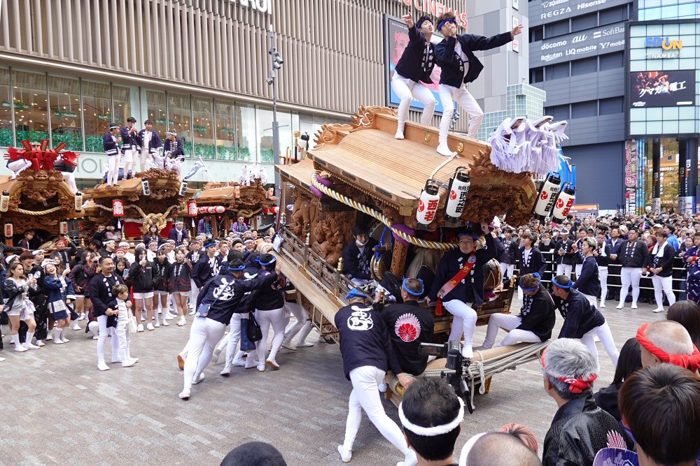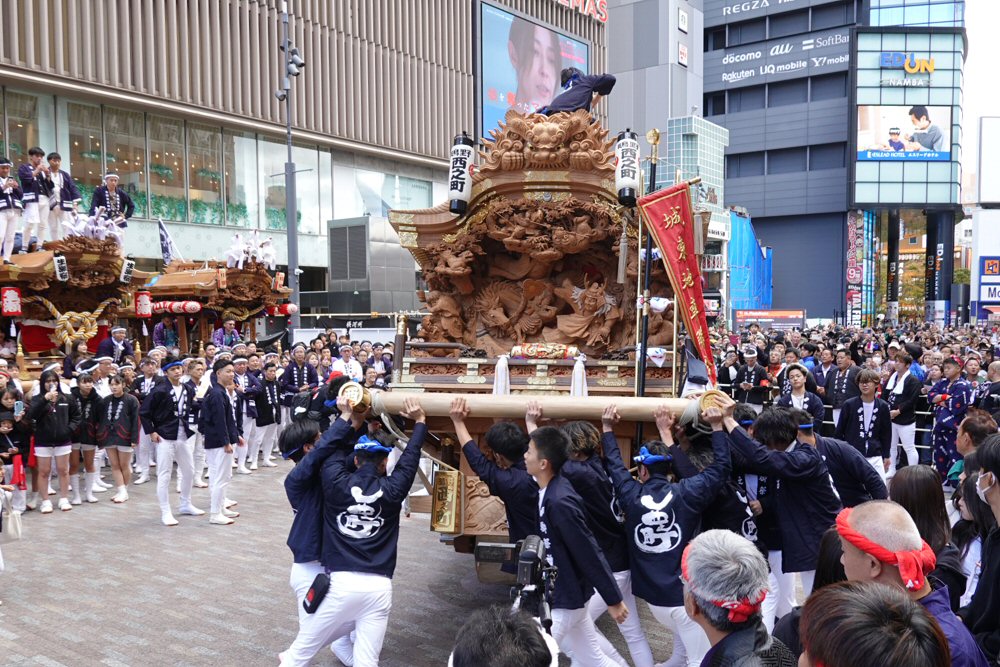 令和7年11月3日、地車in大阪城2025@なんばが、なんば広場で開催されました。 例年は大阪城公園で開催されているイベントですが、今年は南海電車なんば駅前の「なんば広場」で開催され、16台のだんじりが集まりました。