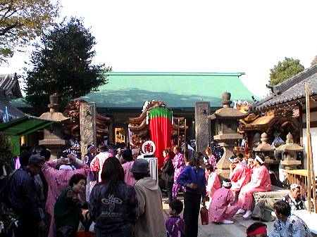 めっきり秋も深まり、朝晩は寒い日が続いていたのに、この日は、日向にいると暑い位の好天になり、6台のだんじりが、地区内を曳行しました。