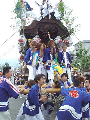 平成13年10月21日、長田神社の宮入りの後、東大阪市六郷地区連合パレードに行きました。 だんじり10台と布団太鼓が参加していて、とても賑やかでした。