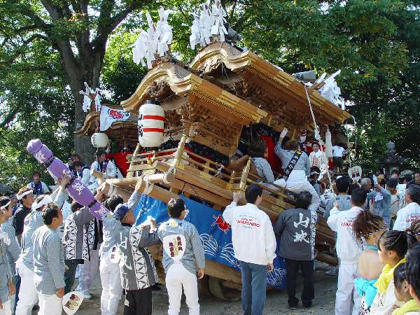 平成15年10月18日、河南町の壱須賀神社の宮入りに行きました。 壱須賀神社の宮入を拝見するのは、平成13年に続いて2度目です。