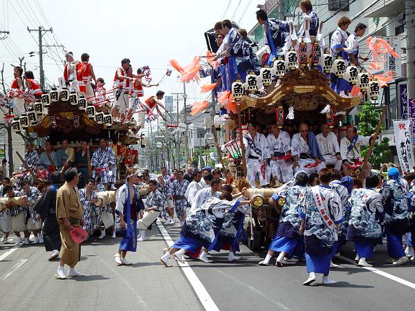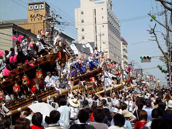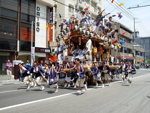 初夏の好天に恵まれた平成15年5月4日、神戸市東灘区本山だんじりパレードに行きました。 この日は、9台のだんじりが集まり、たくさんの見物人で賑わっていました。