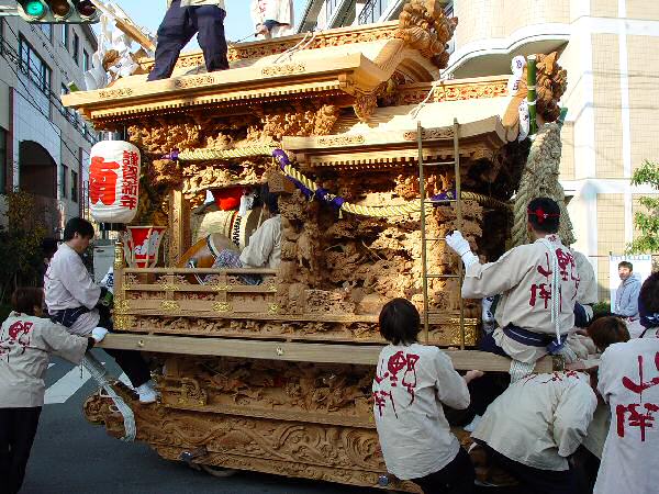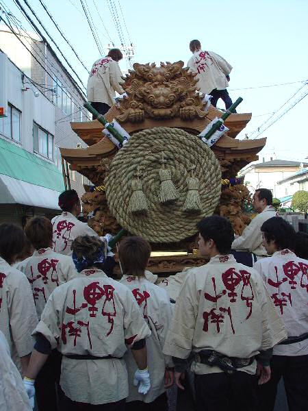 平成16年1月3日、大阪市平野区の杭全神社で地区のだんじりが毎年、交替で行っている注連縄上げがあり、今年は、野堂町南組のだんじりが注連縄を奉納しました。