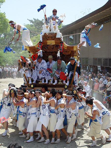 平成17年5月4日、4年ぶりに神戸市東灘区の弓弦羽神社宮入りに行きました。 弓弦羽神社には、御影地区8台のだんじりが宮入りします。 この日も暑いくらいの好天で、大勢の人で賑わっていました。