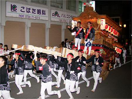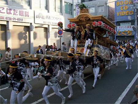 平成21年10月4日、阪南市やぐらパレードに行きました。 午後3時30分頃から、20台のやぐらが続々と集まり、市役所駐車場に並びました。 去年は雨模様でしたが、今年は良い天気に恵まれ、たくさんの人で賑わっていました。 すごい勢いで走るやぐらは迫力があり、楽しませていただきました。