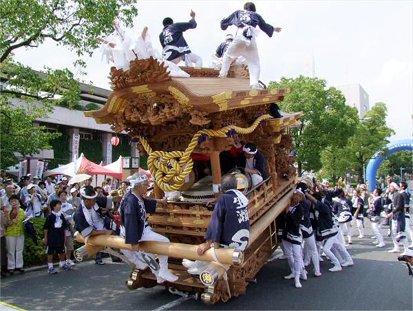 平成21年8月22日、兵庫県西宮市で行われた「にしのみや市民祭り」に行きました。 大変、暑い日で、参加のみなさんは汗だくになっておられ、主催者も、「温度が上がっているので水分を摂って熱中症に注意を」と呼びかけていました。 祭りは市役所周辺で、盛大に行われていて、たくさんの人出でした。 だんじりパレードは、「だんじりライブ」という名前で行われていました。