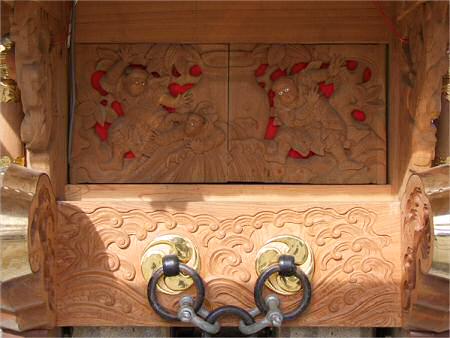 見送り三枚板後ろ正面、角障子、勾欄合、縁葛などです