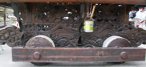 平成22年11月7日、和歌山県伊都郡高野町富貴のだんじりを見学させていただきました。 橋本市から山道を30分ほど走り、急に視界が開けると富貴の街並みです。 ゆったりとした懐かしい風景の残る良いところでした。 だんじりは外ゴマに改造されていたので富貴の方にお聞きしましたが、いつからか分からないとのことです。 もう1台、担いだんじりもあったそうですが、近年、解体処分したとのことでした。 だんじりは、中学生が中心となって曳行し、集めた御花をクラブ活動の経費に充てているとのことでした。 富貴の副区長さんを始め見学をお世話下さった方々、ありがとうございました。