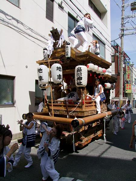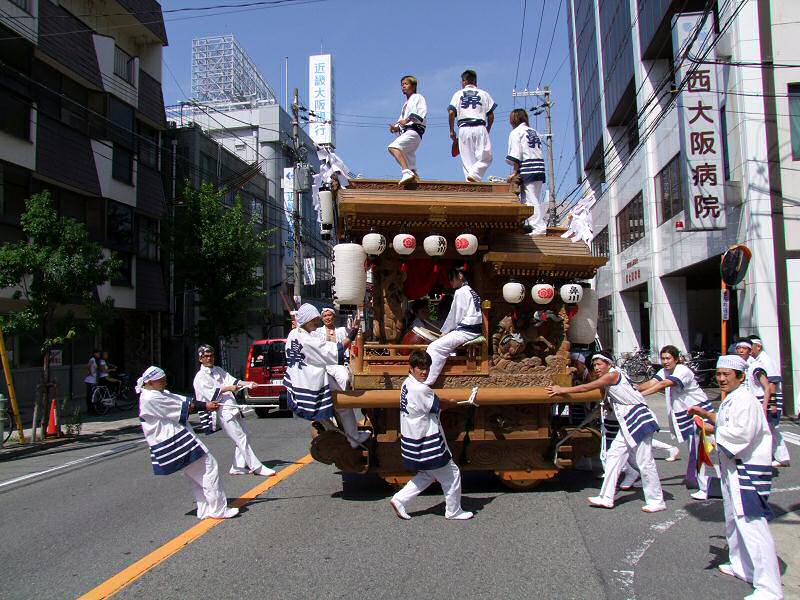 前日までは梅雨末期の雨が降り続いていたのですが、梅雨明けで真夏の暑さとなった平成22年7月17日、今年も西淀川区鼻川の祭礼に行きました。 鼻川青年会の方からお招きいただき、現地では顔見知りとなった方々が、ご挨拶して下さった上、記念品や飲み物まで頂戴しました。 鼻川のみなさんには、大変、お世話になりありがとうございました。
