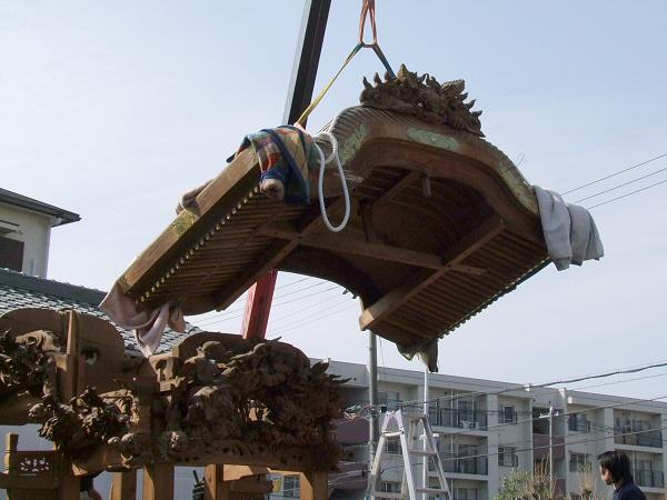 平成23年3月13日、大東市御供田のだんじりが修理のため搬出されると聞き、お邪魔しました。 御供田の小屋に着いた時には、搬出のトラックが横付けされていて、姿見は撮れませんでしたが、だんじりが解体されていく様子を拝見させていただきました。 丁寧に解体されていくと、立派な彫り物がよく見えました。 御供田のみなさん、情報をお知らせくださいました東大阪市のNさん、ありがとうございました。