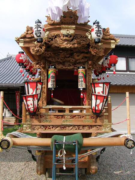 平成23年10月10日、奈良県大和高田市の天神社祭礼に行きました。 渡御の列を迎えるために出されていた、本町壱のだんじりを紹介します。 5枚板の立派なだんじりでした。