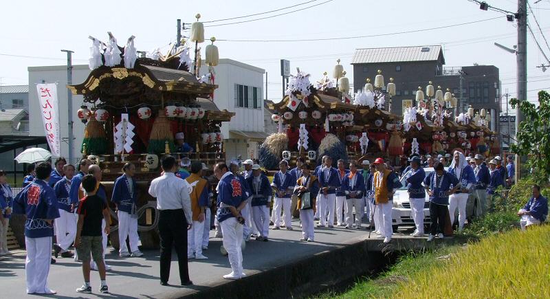 稲穂の傍で休憩するだんじり