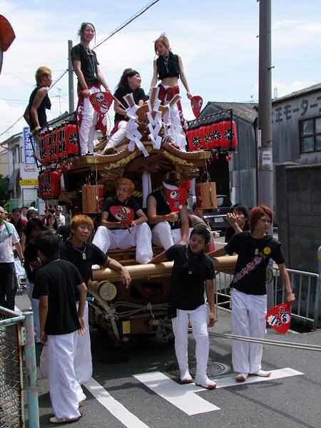 平成24年7月15日、藤井寺市川北の祭礼です。 布団太鼓とだんじりが一緒に曳行されていました。