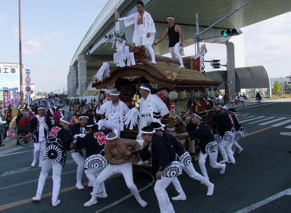 平成24年11月3日、門真市で地域伝統文化まつりが開催され、だんじりも参加しました。 門真市のだんじりを見るのは初めてです。