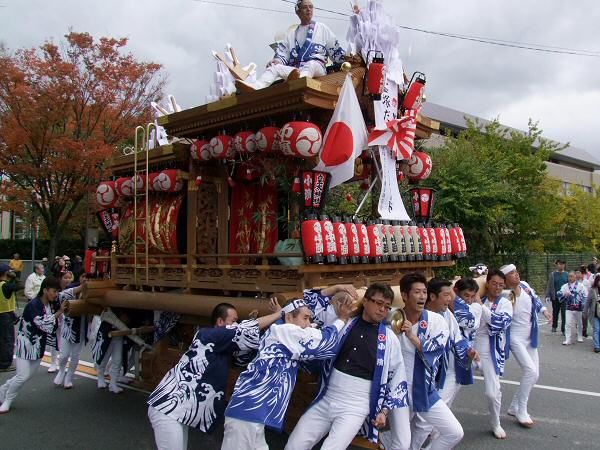 平成24年11月10日、第二回宝塚だんじりパレードが行われ、11台のだんじりが曳行されました。 昨年は中山寺駅周辺で開催され、あいにくの雨でしたが、今年は良い天気に恵まれたこともあり、会場の市役所横の末広中央公園はたくさんの人で賑わっていました。