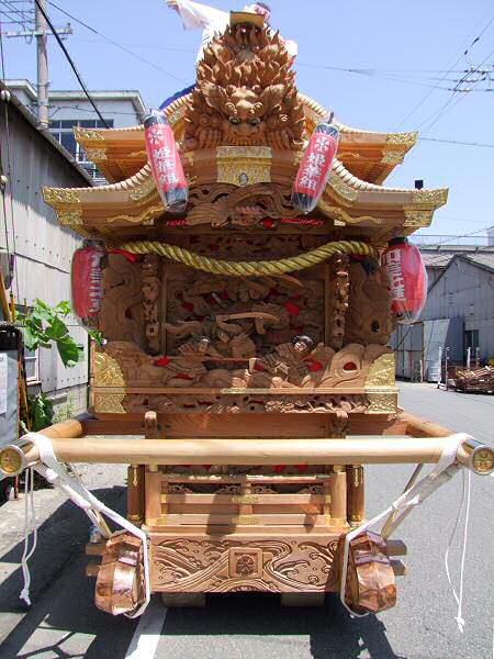 平成25年7月7日、育和の祭礼を見てから、大阪市平野区加美北東の試験曳きに行きました。 ここでも、だんじりを探すのに苦労しましたが、走り回って見つけることができました。 ちょうど、休憩になったので、写真を撮らせていただきました。