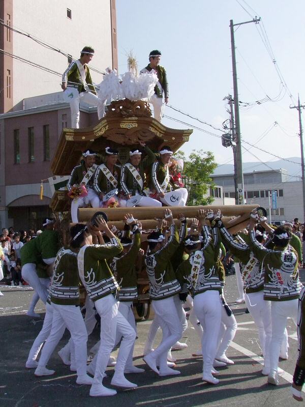 平成25年10月12日、河内長野市、大阪狭山市、富田林市をまわり、再び河内長野市に戻りました。 三日市駅前東側ロータリーで6台のだんじりが集合していました。