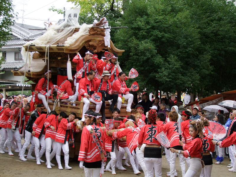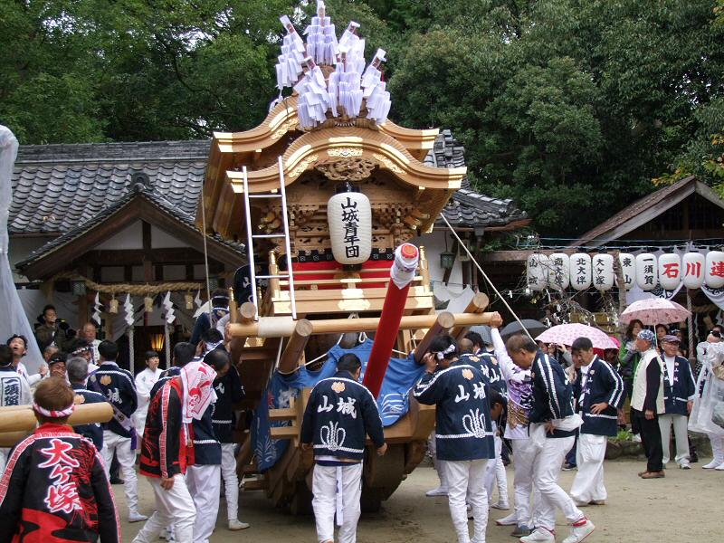 反対側からは大ケ塚、山城、北大伴がだんじりを左右に揺らせて来ました |