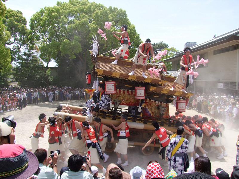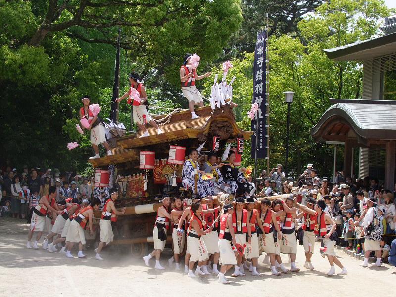 平成26年5月4日、神戸市東灘区の本住吉神社宮出を見てから、弓弦羽神社に行きました。 弓弦羽神社の宮入を見るのは5年ぶりです。 暑いぐらいの良い天気となり、地面が乾いて砂埃がすごかったです。 ぼやけたように見える写真は砂埃のためです。