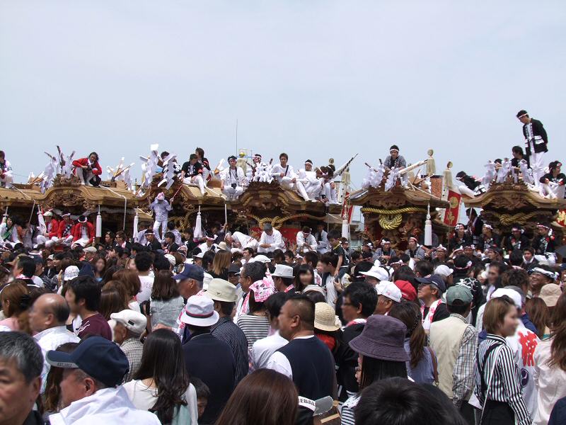 当日は好天に恵まれた中、だんじりが集結し、パレードが行われました。 会場に着くと、市役所駐車場に24台ものだんじりがずらりと並んでいました。 それも、すべてが上だんじり、さぶいぼものでした。