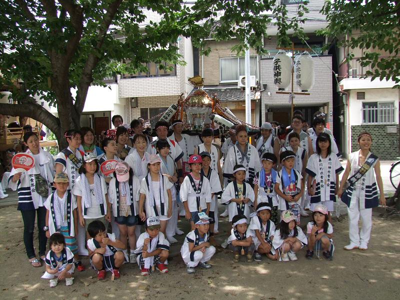平成26年7月19日、今年も鼻川青年会の方からお招きをいただきましたので、大阪市西淀川区鼻川の祭礼に行きました。 青年会の方にお聞きしたところでは、翌日の20日は雨が降ったとのことでしたが、この日は暑かったものの良い天気に恵まれました。