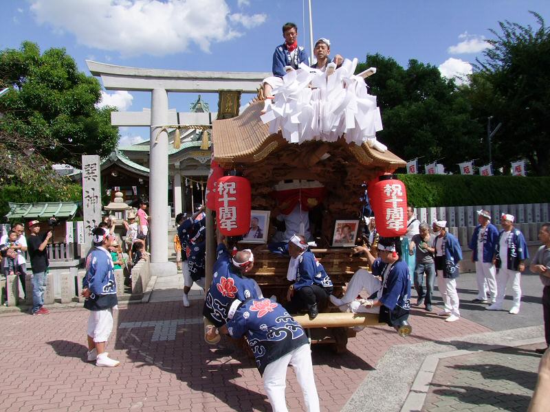 四條地車の新調10周年記念が行われ、巽地区の地車・布団太鼓もお祝いに集まりました。 曳行は朝早くから行われ、巽神社で記念式典なども行われたようですが、管理人はお昼ごろに着いたので、各町が集まって休憩しているところでした。 集合した各町と出発の様子をご覧ください。