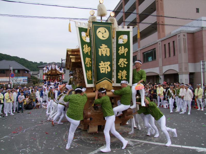 平成26年10月11日、河内長野市三日市駅前に行きました。 6台のだんじりが集まっていたのですが、行くのが遅くなってしまい、既に4台のぶんまわしが終わった後でした。 そんな訳で4台は退場の写真ですが、ご覧ください。