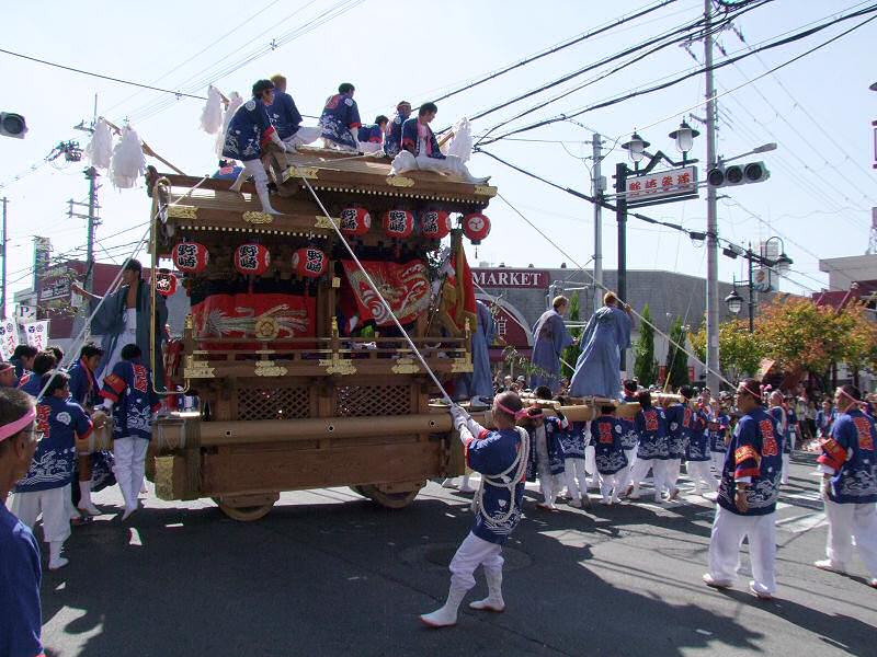 平成27年10月18日、大東市の四条ふるさとまつりに行きました。 良い天気の中、JR野崎駅前の野崎参道商店街には、北河内型の巨大なだんじりが集まり、賑わっていました。 まず、前半の4台です。