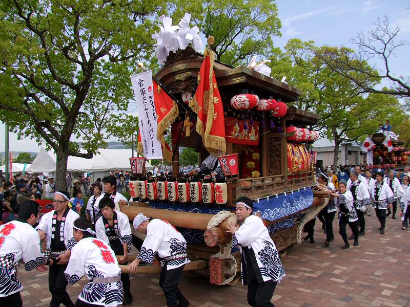 平成28年4月23日、第4回宝塚だんじりパレードが開催され、15台のだんじりが宝塚市役所隣の末広公園に集まりました。 このページでは、1番目から8番目のだんじりがパレード会場に入場ところを紹介します。