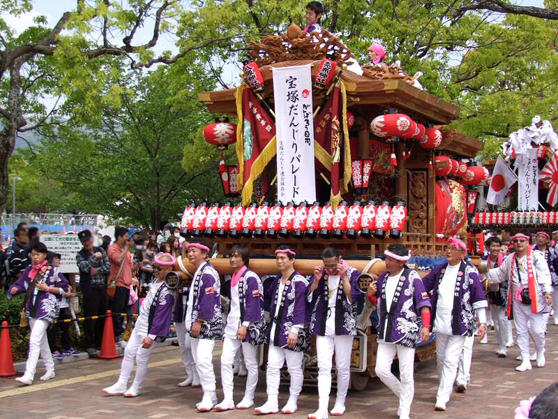 平成28年4月23日、第4回宝塚だんじりパレードが開催され、15台のだんじりが宝塚市役所隣の末広公園に集まりました。 このページでは、9番目から15番目のだんじりがパレード会場に入場ところを紹介します。 なお、一部に入場前の写真があります。