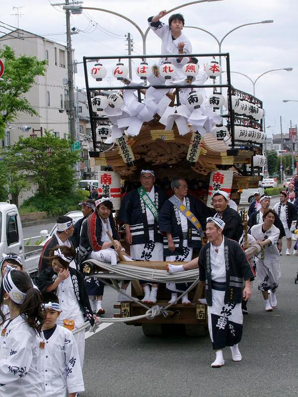 平成28年4月29日、布施地区連合地車パレード開催され、9台のだんじりが参加しました。 集合場所の三ノ瀬公園近くに集まった各町と、出発するところです。