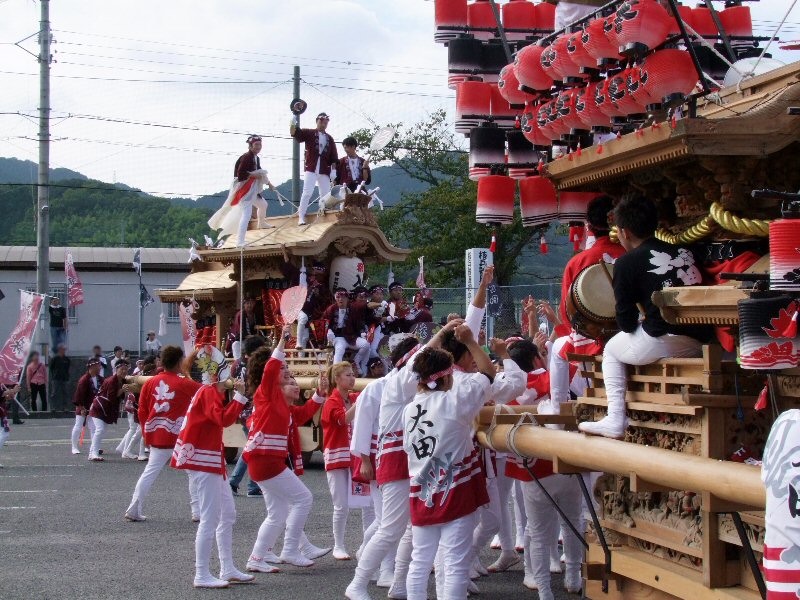 平成28年10月16日、奈良県葛城市當麻の祭礼で、葛城市役所當麻庁舎駐車場に5台のだんじりが集まった時の様子です。 このページでは各町入場時の写真をご覧ください。