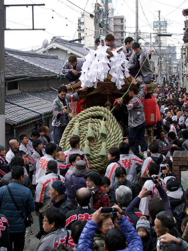 背戸口組のだんじりが、宮前交差点近くにやって来ました |