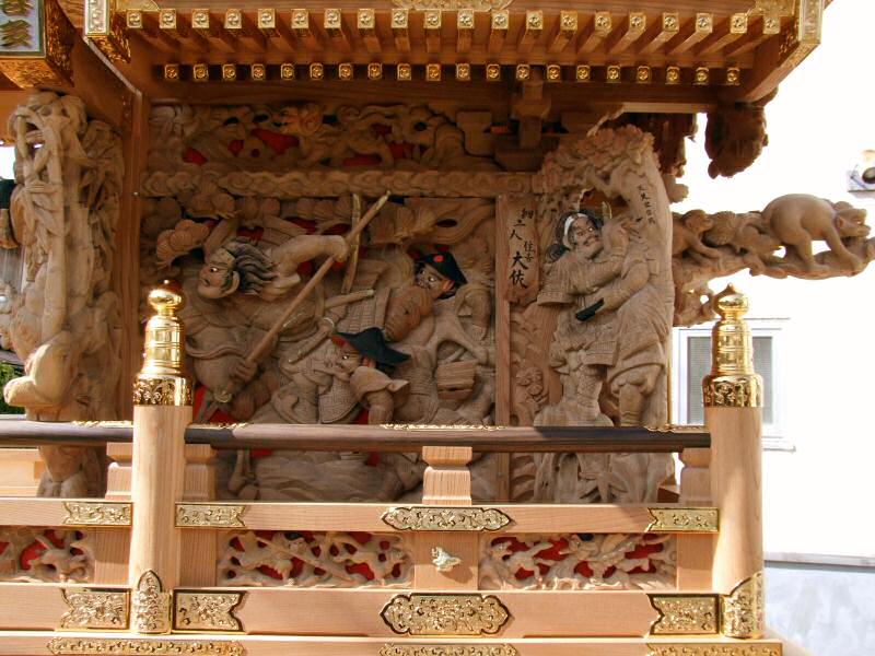 平成30年2月18日、河内長野市喜多町のだんじりを見学させていただきました。 喜多町のだんじりは、昨年、修理が完成し、その時にも拝見しましたが、今回は、飾り付けをしていないだんじりを見せていただくことができました。