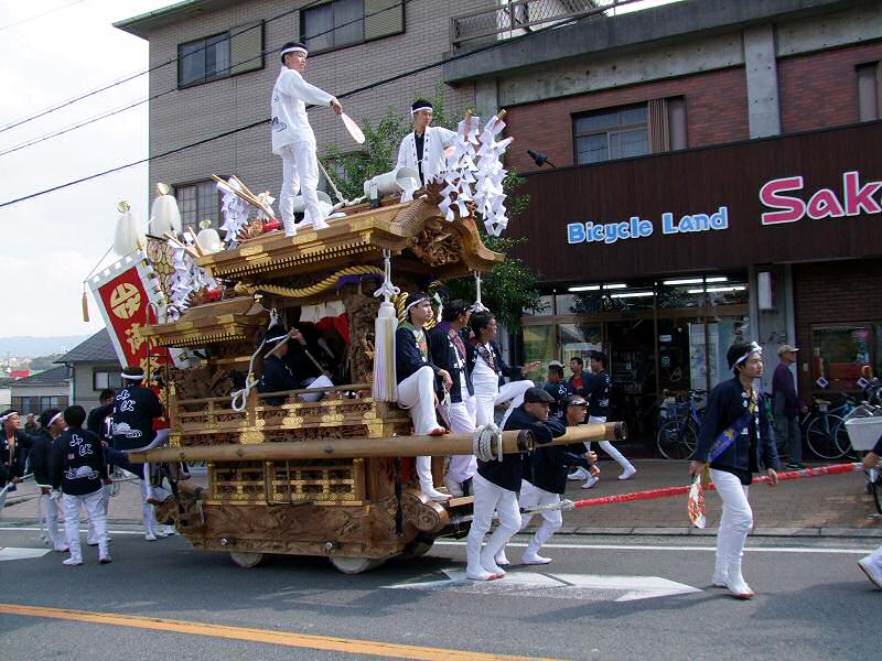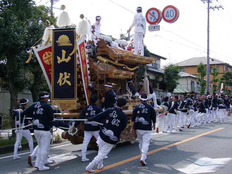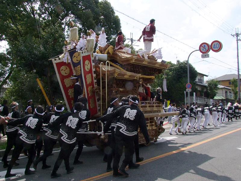平成30年10月14日の祭礼で行われた、大阪狭山市地車連合パレードでの各町です。 10台のだんじりが参加したパレードでは出発後すぐに急坂を上ります。 このページでは前半の5台をご覧ください。