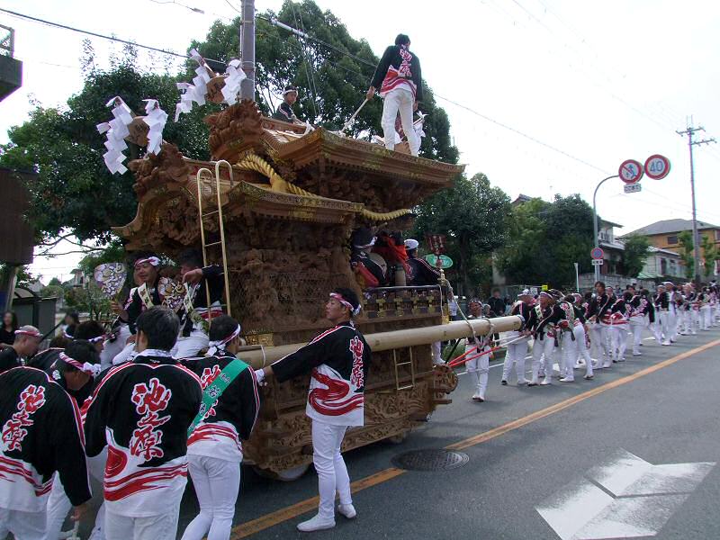 平成30年10月14日の祭礼で行われた、大阪狭山市地車連合パレードでの各町です。 10台のだんじりが参加したパレードでは出発後すぐに急坂を上ります。 このページでは後半の5台をご覧ください。