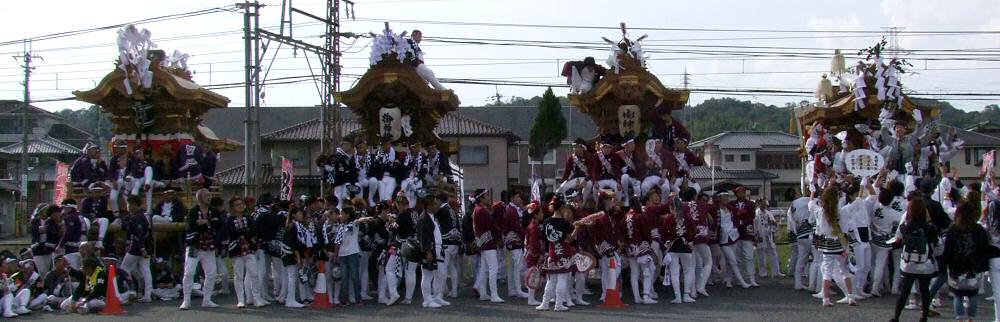 平成30年10月14日の富田林市祭礼での、初芝富田林高校駐車場パレードです。 4台のだんじりが集まりましたが、管理人が到着した時には、嬉のパレードが終わりかけていました。