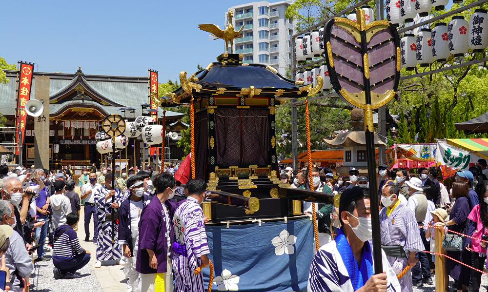 令和4年5月5日、何年かぶりに神戸市東灘区本住吉神社の住吉地区宮出に行きました。 晴天の中を各だんじりが宮出していきました。