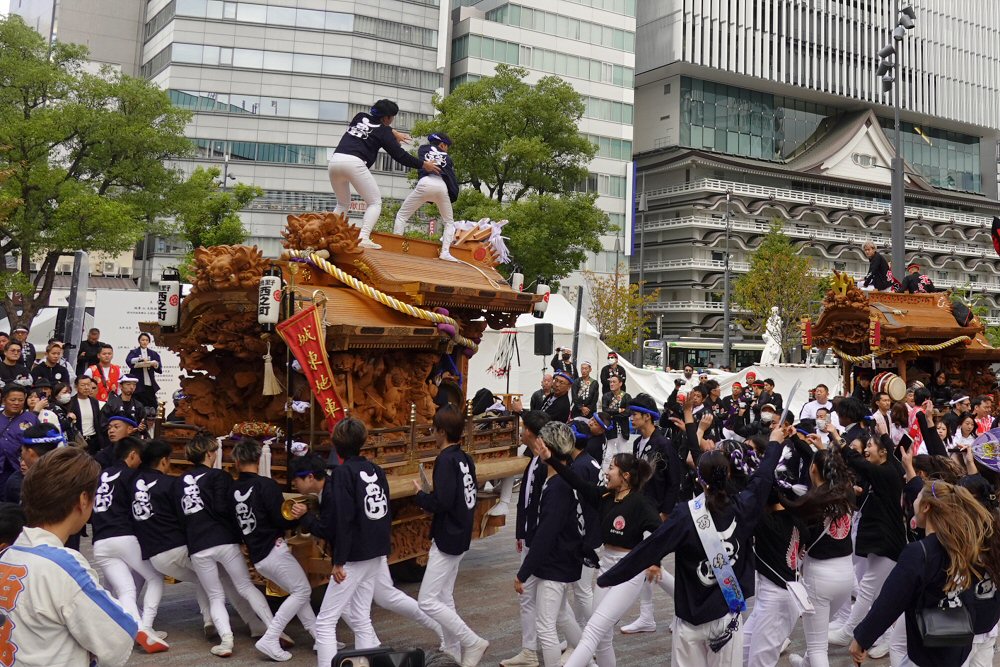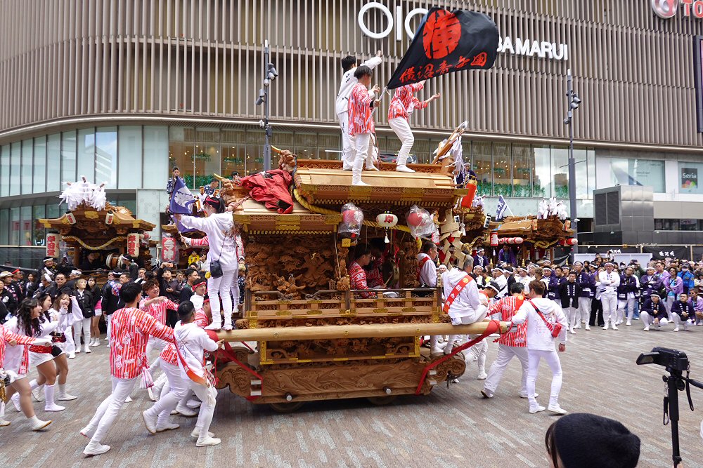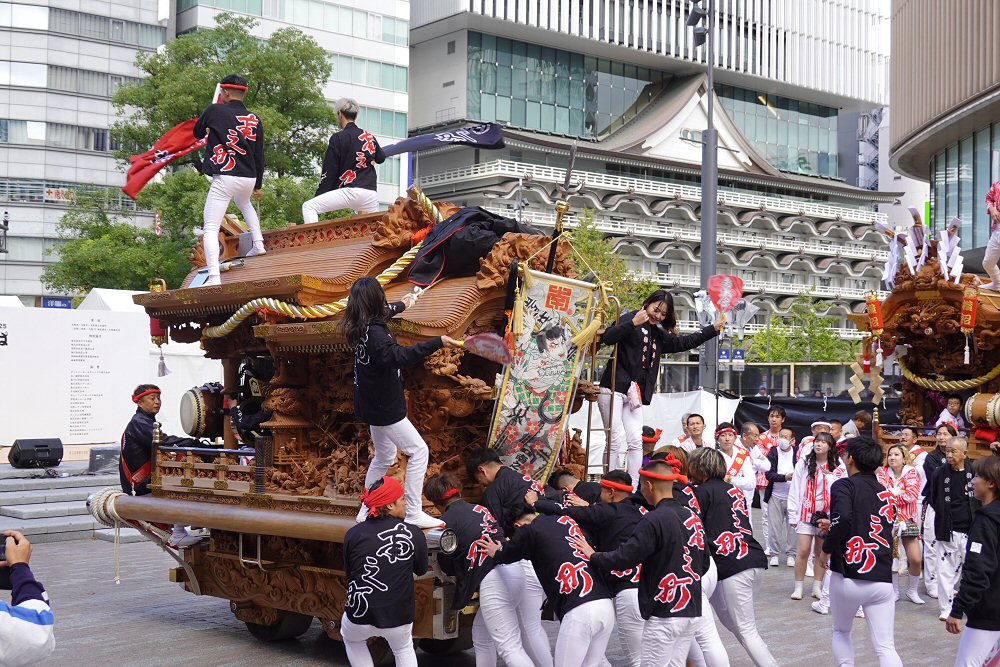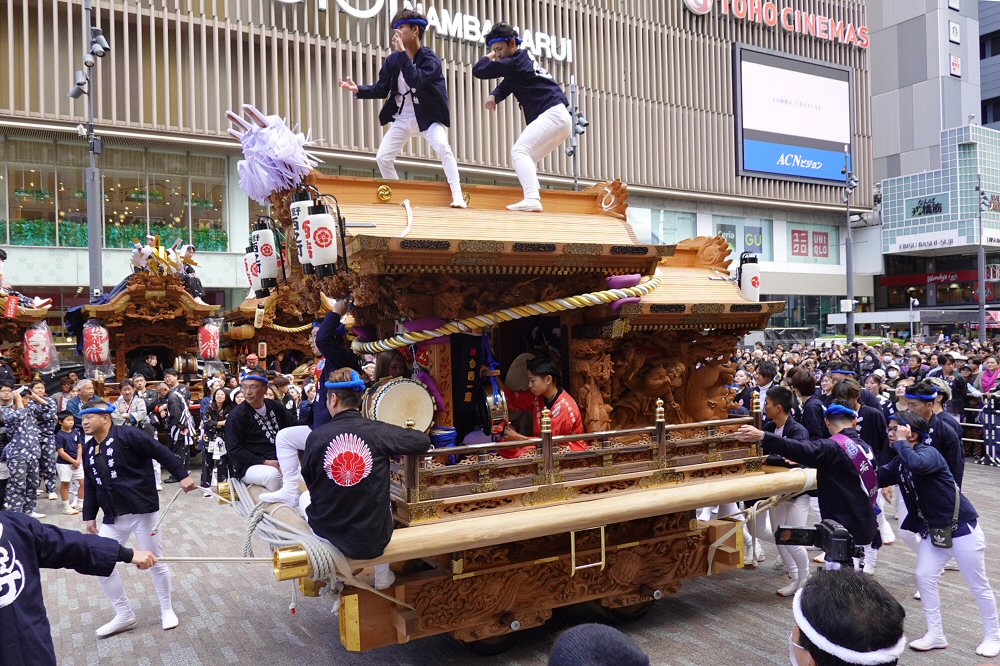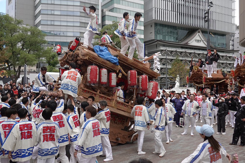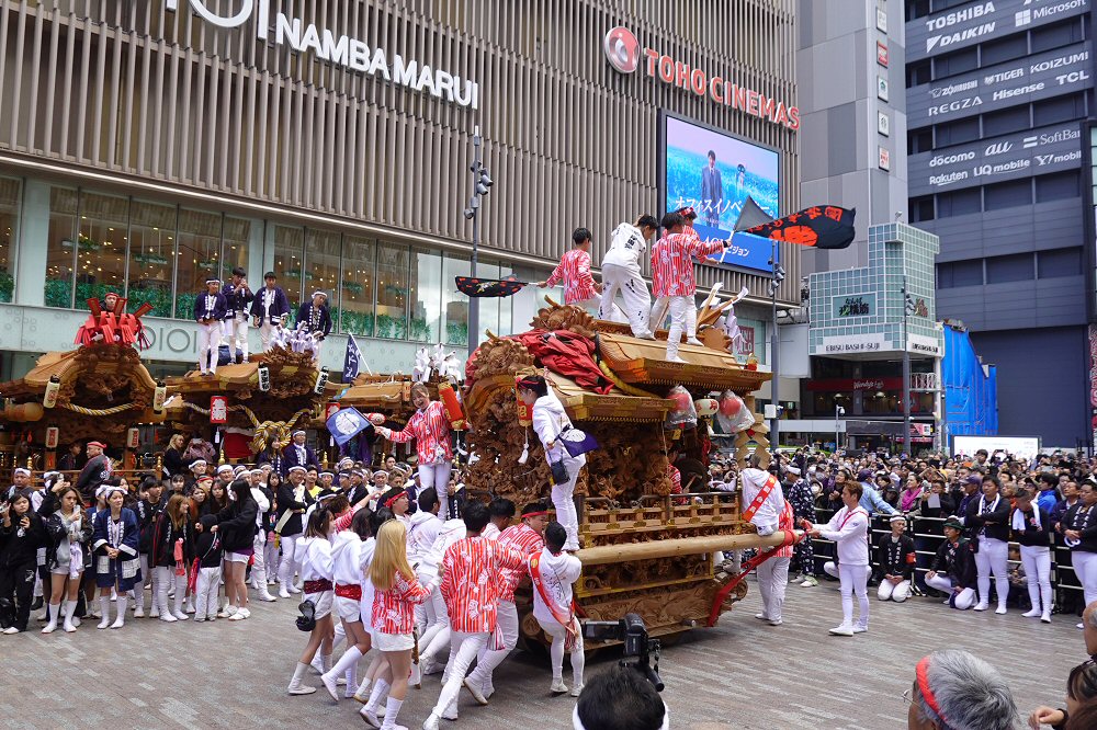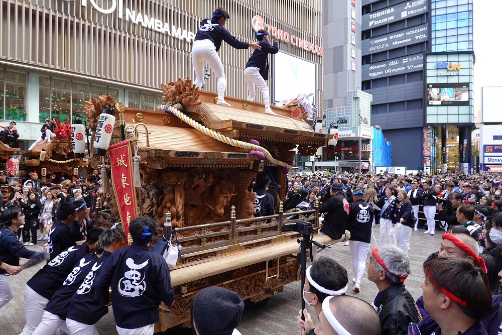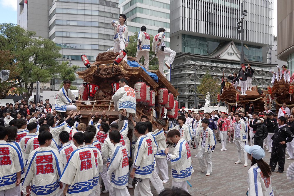令和7年11月3日、地車in大阪城2025@なんばが、なんば広場で開催されました。 例年は大阪城公園で開催されているイベントですが、今年は南海電車なんば駅前の「なんば広場」で開催され、16台のだんじりが集まりました。
