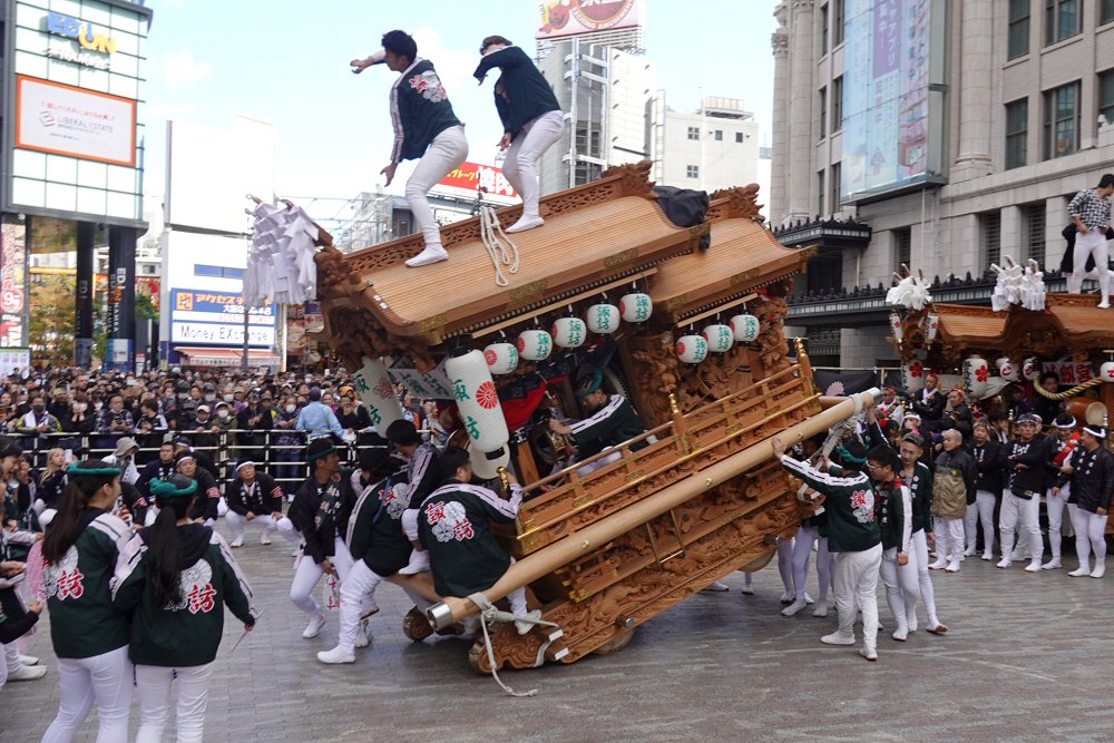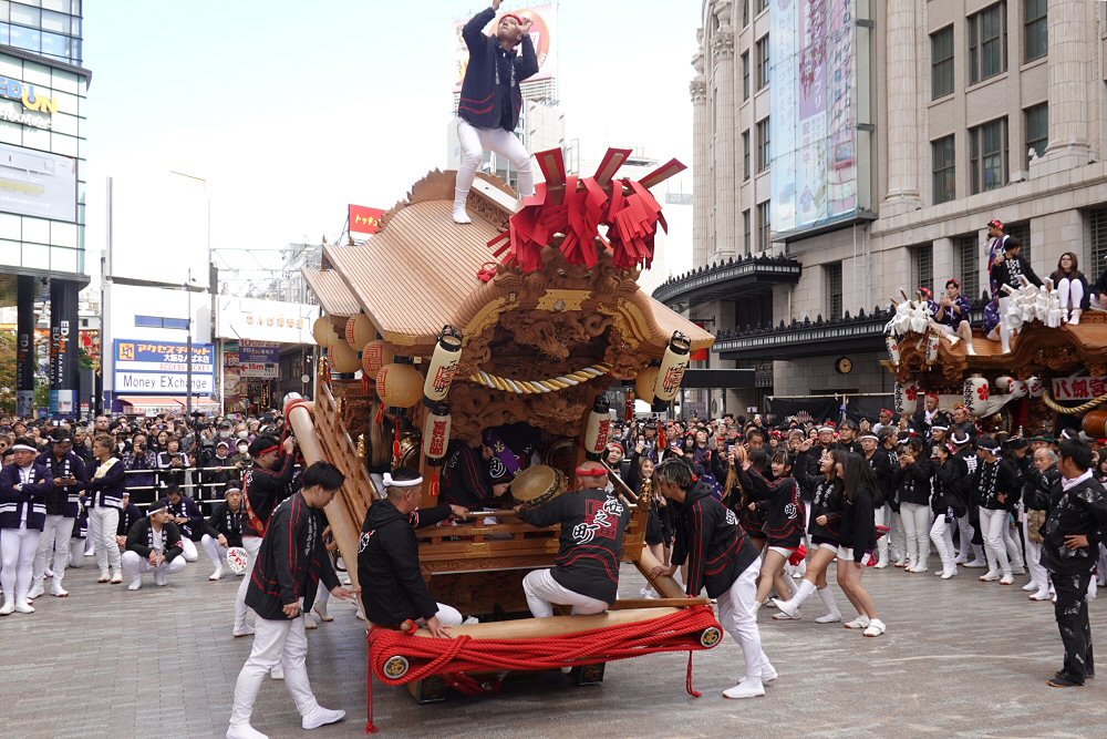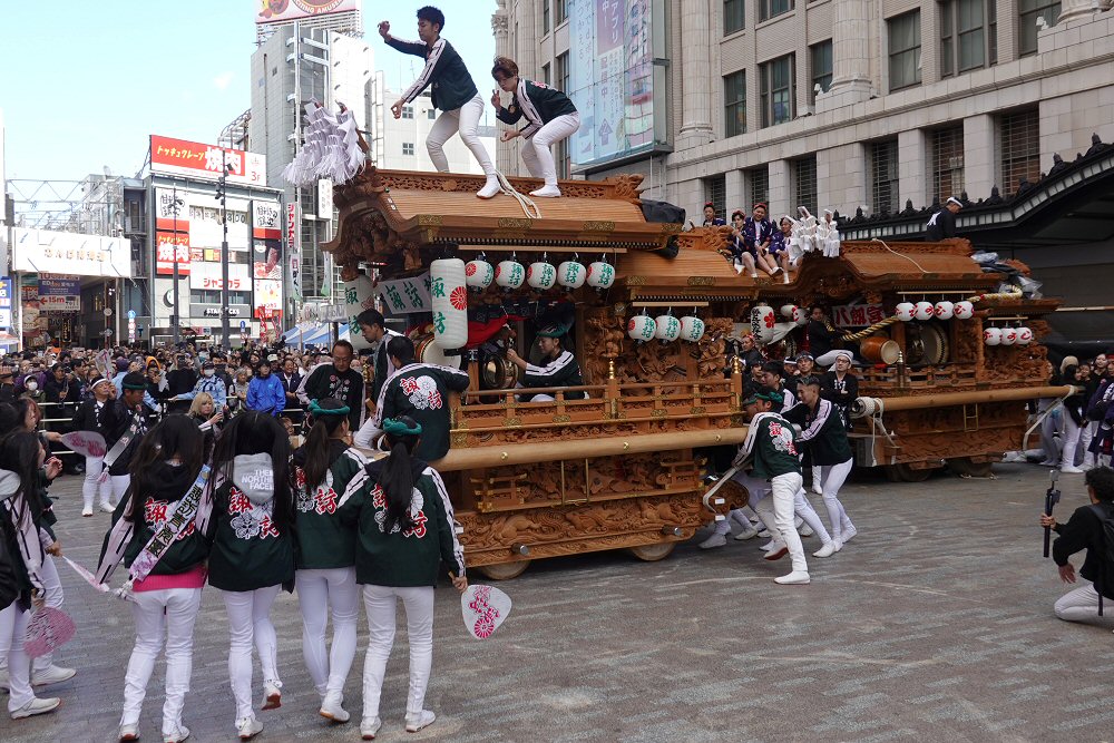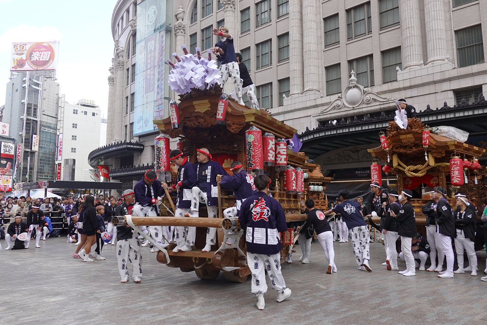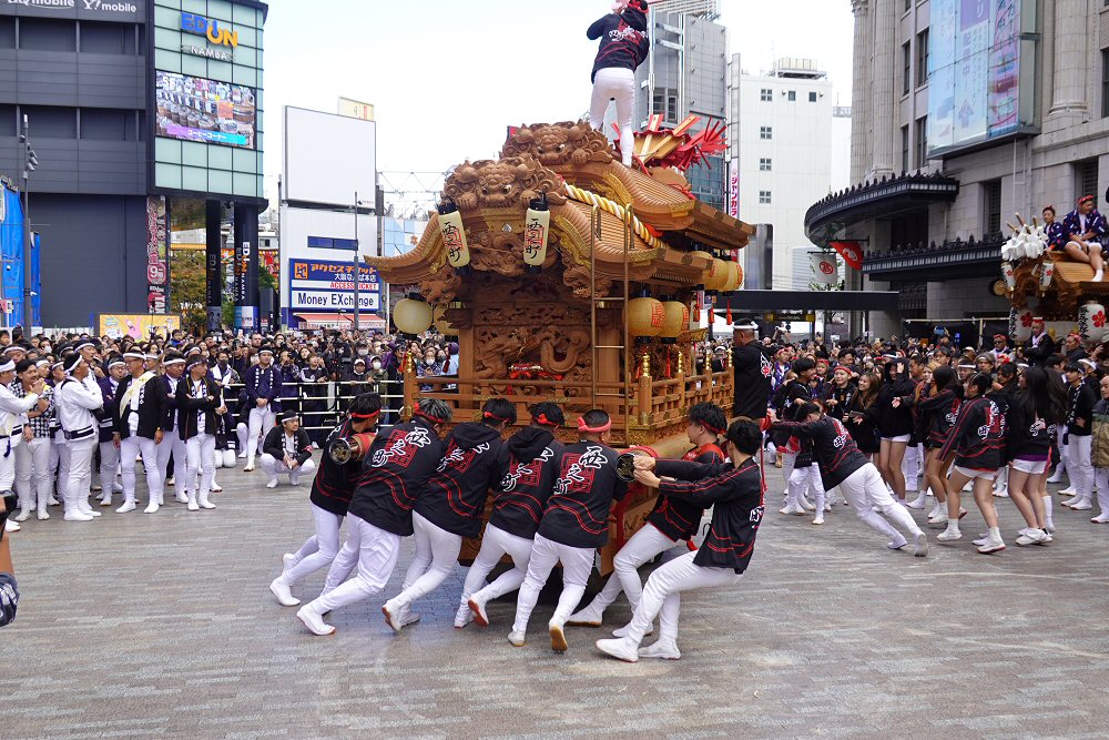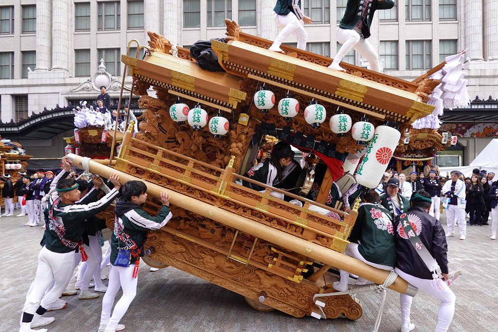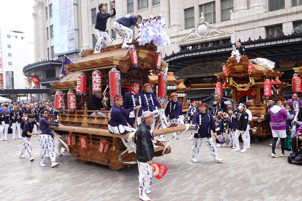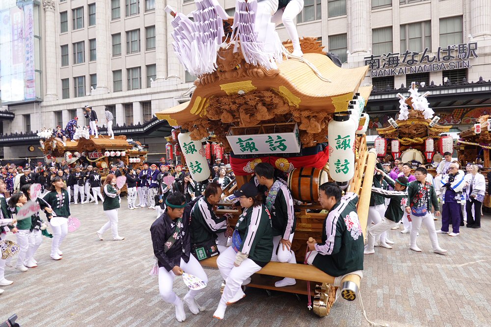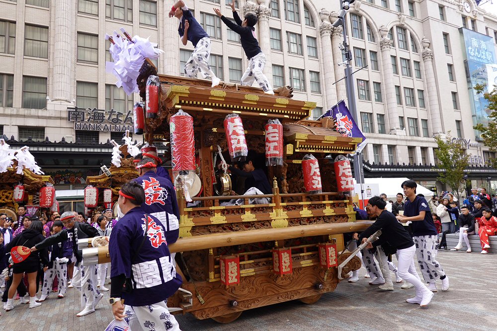 令和7年11月3日、地車in大阪城2025@なんばが、なんば広場で開催されました。 例年は大阪城公園で開催されているイベントですが、今年は南海電車なんば駅前の「なんば広場」で開催され、16台のだんじりが集まりました。