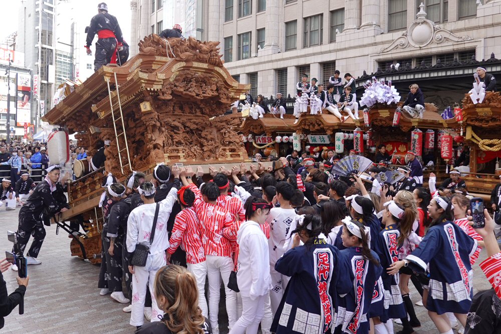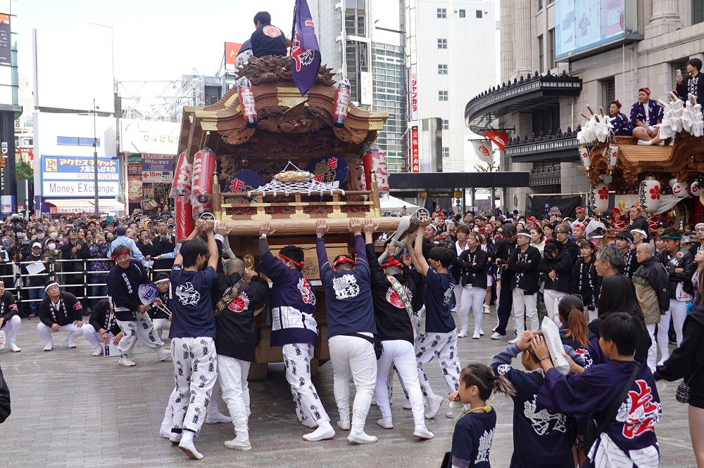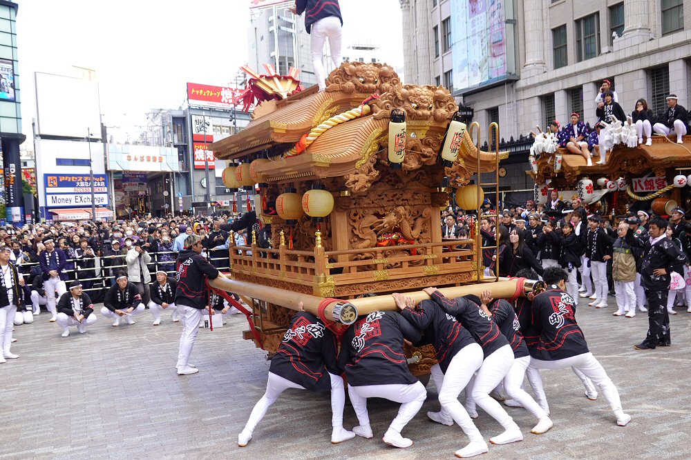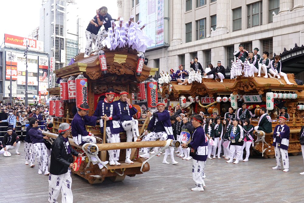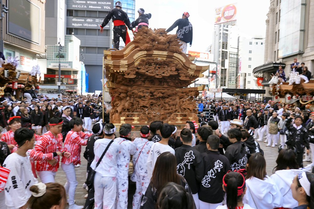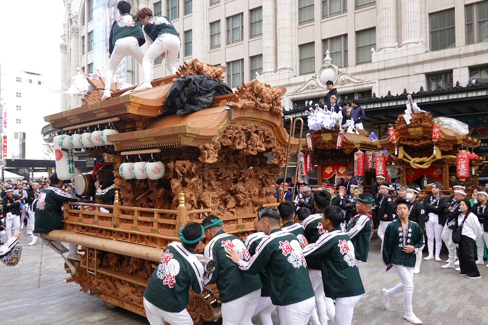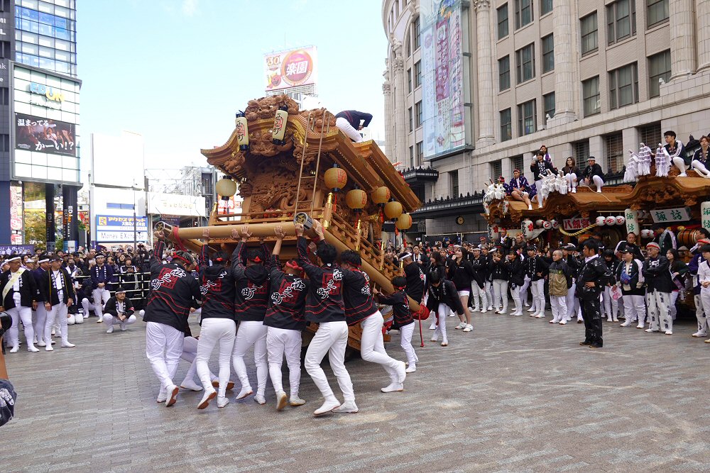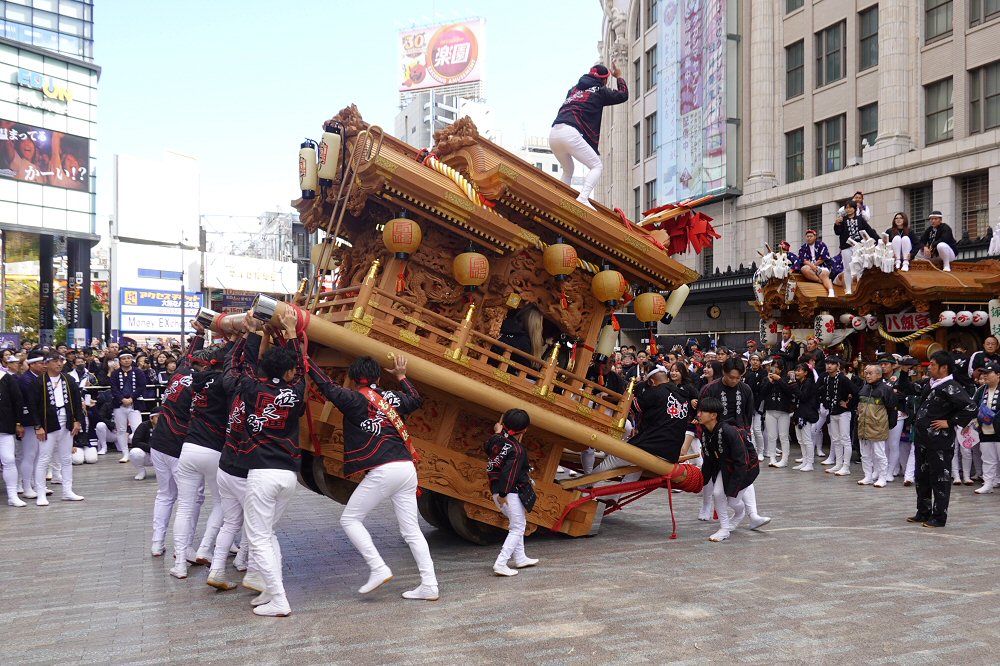 令和7年11月3日、地車in大阪城2025@なんばが、なんば広場で開催されました。 例年は大阪城公園で開催されているイベントですが、今年は南海電車なんば駅前の「なんば広場」で開催され、16台のだんじりが集まりました。