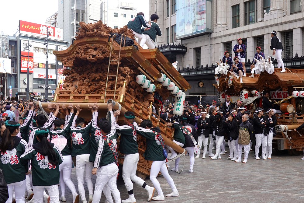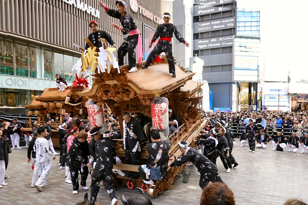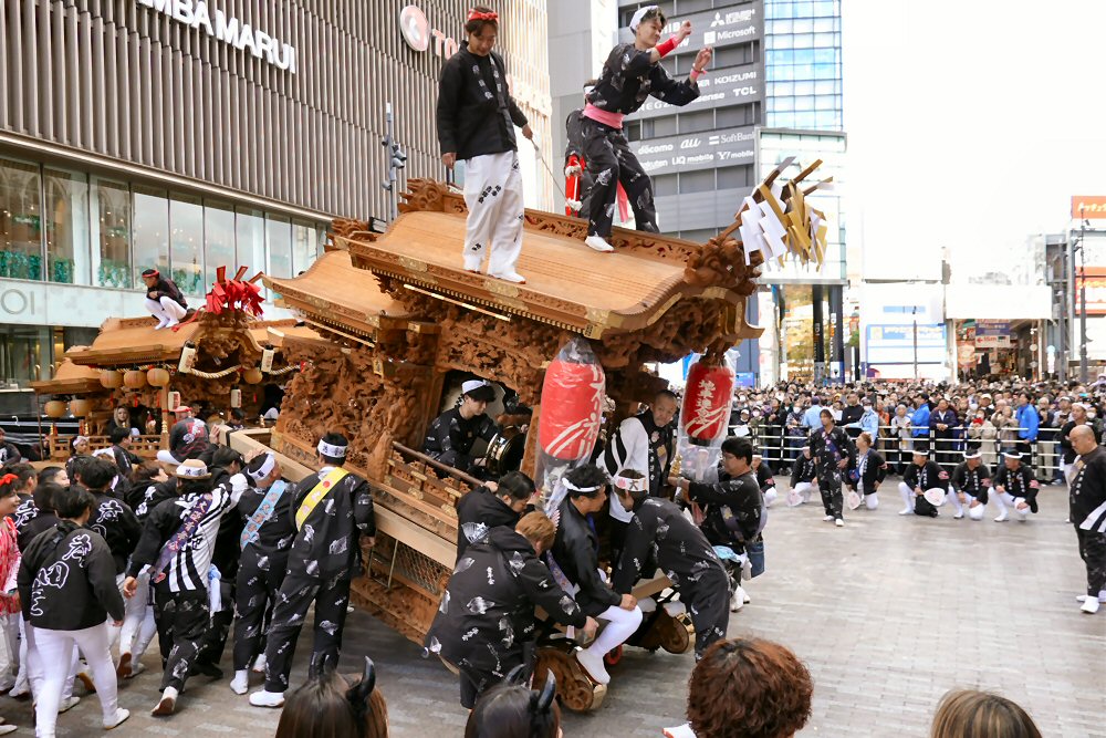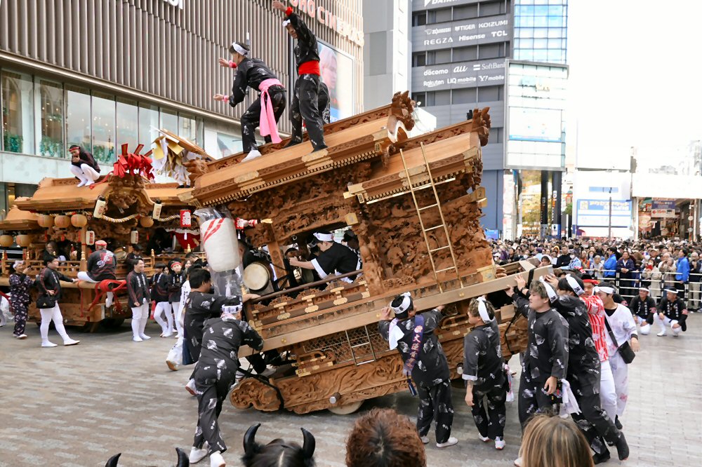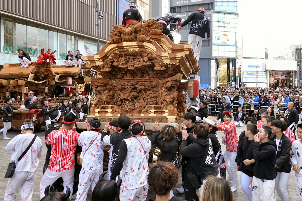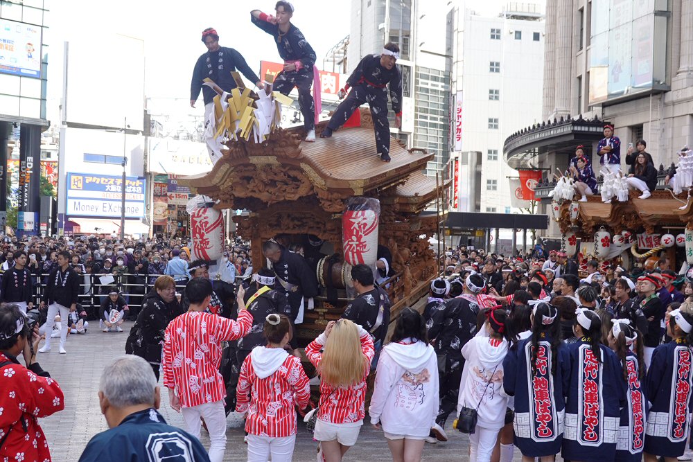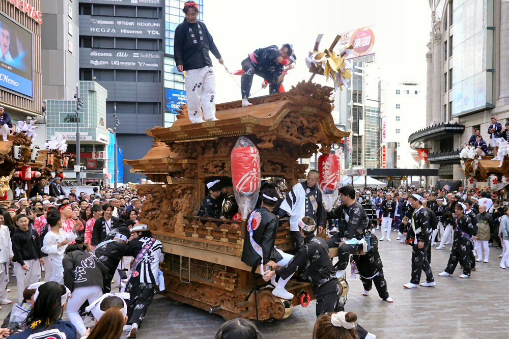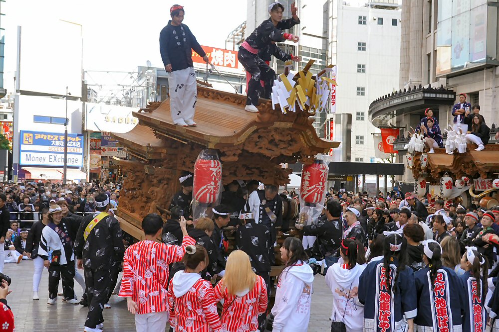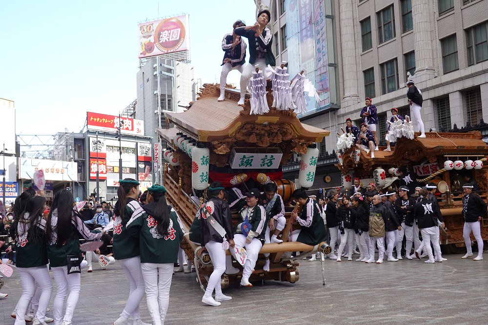 令和7年11月3日、地車in大阪城2025@なんばが、なんば広場で開催されました。 例年は大阪城公園で開催されているイベントですが、今年は南海電車なんば駅前の「なんば広場」で開催され、16台のだんじりが集まりました。