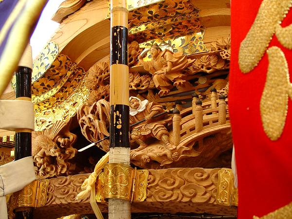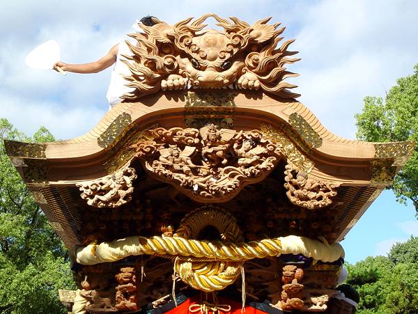 平成14年9月1日、堺市新在家区のだんじりが修理を終えて、入魂式がありました。 新在家区のだんじりは、昭和52年に新調されたもので、同市野代区とともに新調ブームの先駆けとなりました。 入魂式は、大鳥大社摂社の美波比神社で行われ、神社境内では、懐かしい「村の太鼓」が聞かれました。