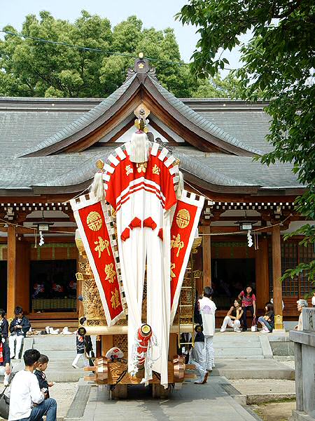 平成16年5月23日に堺市高松のだんじりの修理が完成し、萩原神社(萩原天神)で入魂式が行われました。 この日は、高松地区に向かう途中で、だんじりを載せたトラックに遭遇しました。 また、暑さも厳しくなく、好い天気に恵まれ、絶好の入魂式日和でした。