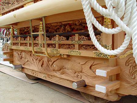 平成18年4月29日、羽曳野市馬場町の入魂式がありました。 このだんじりは、和泉市上伯太から購入されたもので、東大阪箕輪で曳行されている元下伯太とは、兄弟だんじりです。 また、購入にあたり、彫り物や下勾欄の追加をされたそうです。 馬場町のみなさん、おめでとうございます。