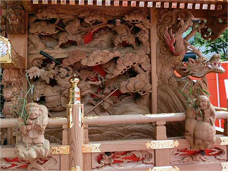 平成19年9月23日、東大阪市森河内本郷のだんじりの改修が完成し入魂式がありました。 9月も終わりに近くなりましたが、この日も真夏日でした。 だんじりは、多くの部材や彫物が交換され、新調のように綺麗になっていました。 入魂式の後、森河内新地のだんじりの先導で御披露目曳行が行われるとのことでしたが、都合で曳行まで見ることができませんでした。 森河内本郷のみなさん、おめでとうございます。
