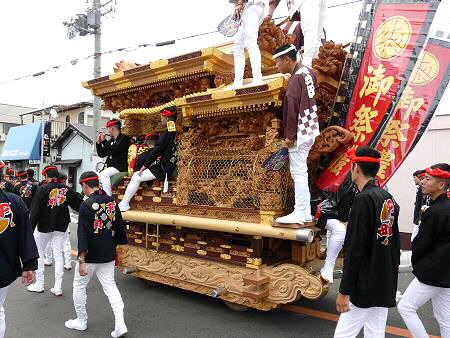 平成19年9月2日、泉大津市下之町のだんじりが新調され、入魂式と御披露目曳行がありました。 真夏が戻ってきたかのような暑さの中で、下之町のみなさんの喜びの熱気が溢れていました。 各町への御披露目を終えた後、祝賀会が開かれました。 泉州から上だんじりが消えていく中で、立派な上だんじりが新調されて嬉しいですね。 下之町のみなさん、おめでとうございます。