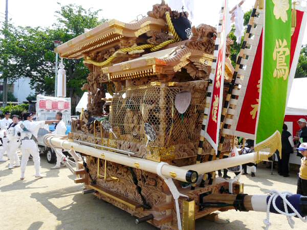 平成20年5月18日、堺市中区鴬谷のだんじりの修理が完成し、町内の公園で入魂式が行われました。 だんじり購入から7年振りの修理で、とても綺麗になっていました。 鴬谷のみなさん、おめでとうございます。 なお、曳行は午後からとのことで、残念ながら見ることができませんでした。