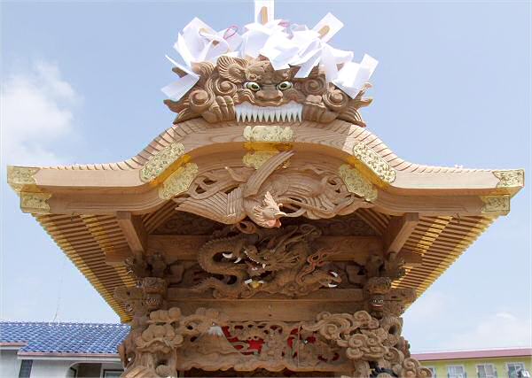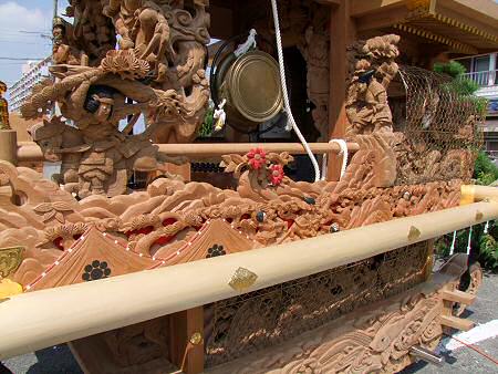 平成21年9月5日、富田林市加太のだんじりの修理が完成し、入魂式が行われました。 修理搬出の時にも見学させていただいたのですが、とても綺麗になっていました。 このだんじりは、和泉市葛ノ葉町の先代で、よく見ていただんじりなので懐かしく感じました。 なお、御披露目曳行は午後からとのことで、残念ながら見ることができませんでした。