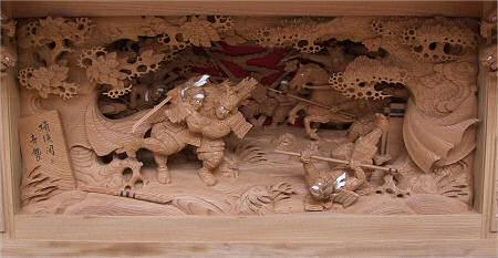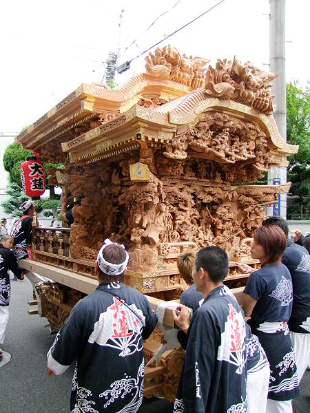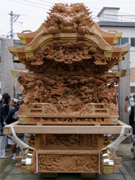 だんじりの入魂式が行われました。 金網が取り付けられていなかったので、立派な彫り物を拝見することができました。 大蓮のみなさん、おめでとうございます。