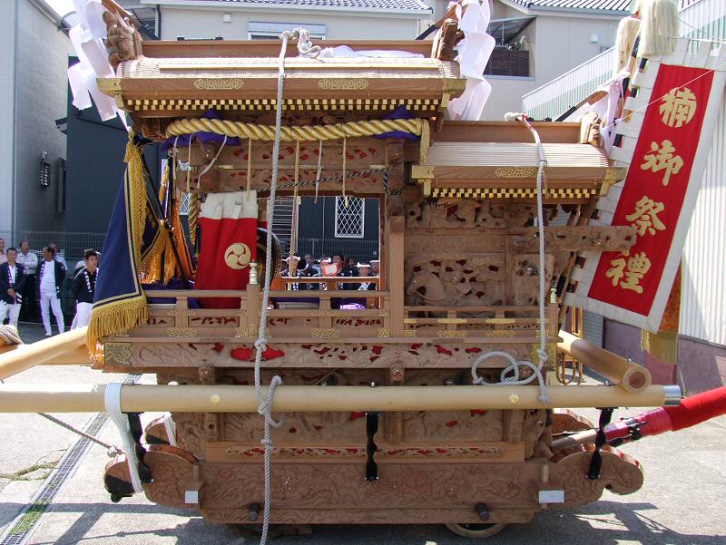 平成23年9月25日、河内長野市楠町のだんじりの修理が完成し、入魂式が行われました。 だんじりは提灯を付けたまま小屋に入っていましたが、入魂式会場で提灯を外されたので、彫り物を拝見することができました。 楠町のみなさん、おめでとうございます。